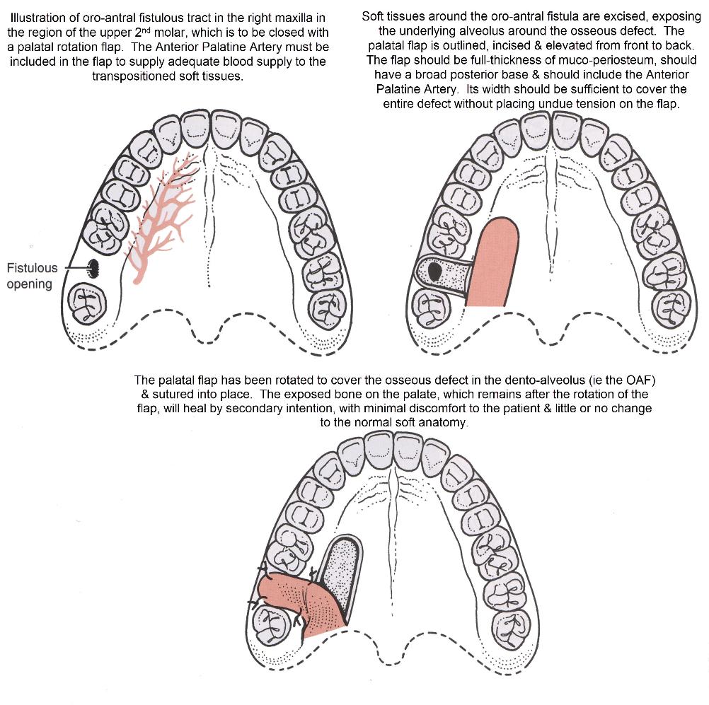 The flap used to close the mouth sinus hole can breakdown for a number of reasons. If this happens, then, depending on the size of the mouth-sinus hole, the procedure will need to be done again.